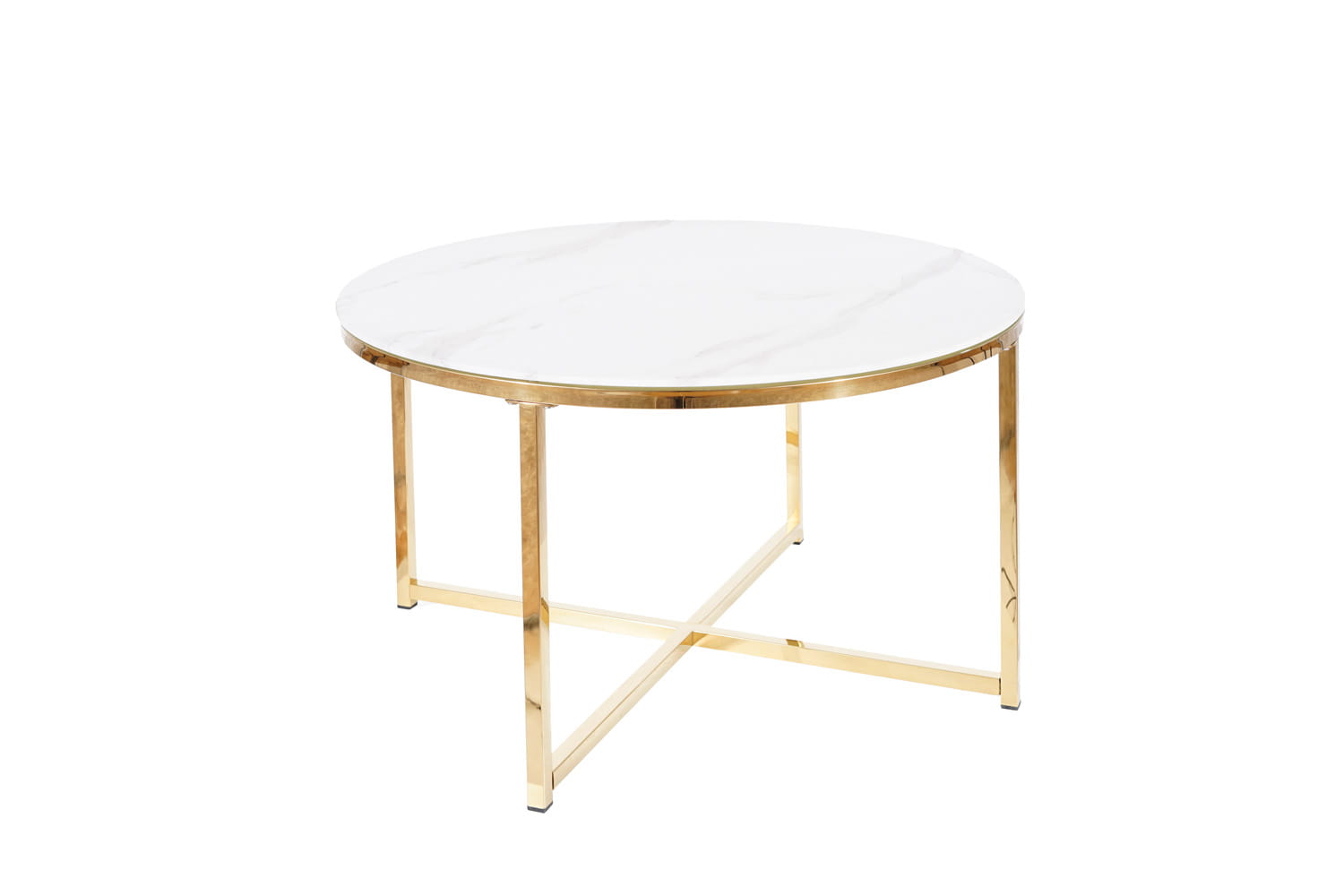 Ława, blat: szkło hartowane, stelaż: stal nierdzewna, kolor: biały, efekt marmuru / złoty.