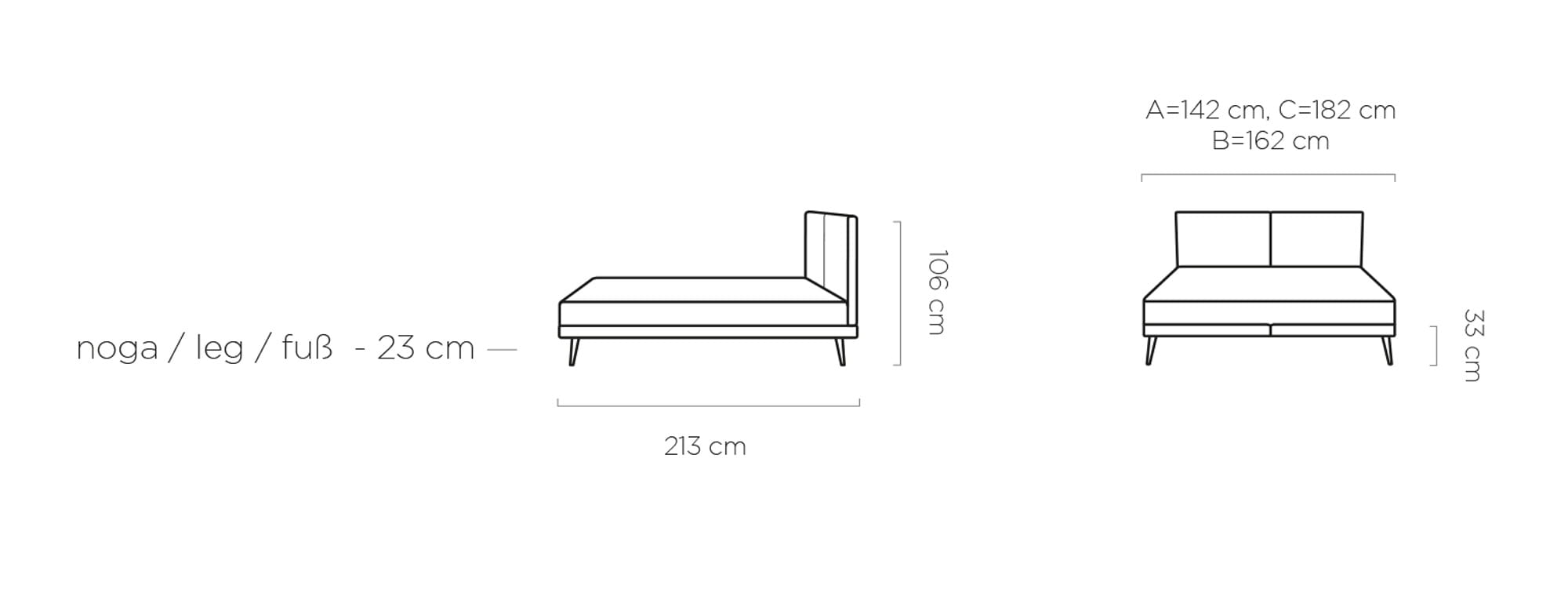 - powierzchnia spania 140 / 160 / 180 x 200 cm