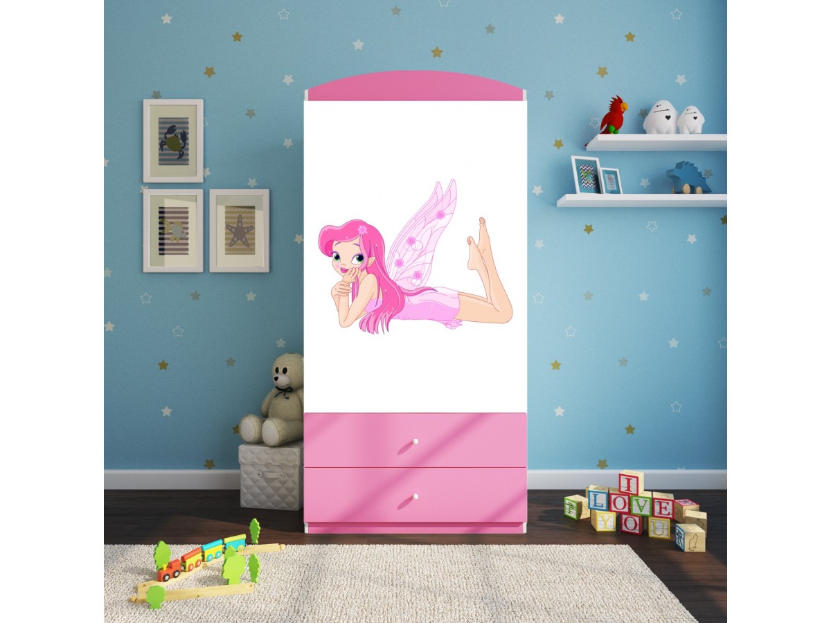 Wewnątrz szafa podzielona jest na dwie części , z których jedna posiada drążek na wieszaki z odzieżą a druga 4 półki (40 x 60 x 30 cm)