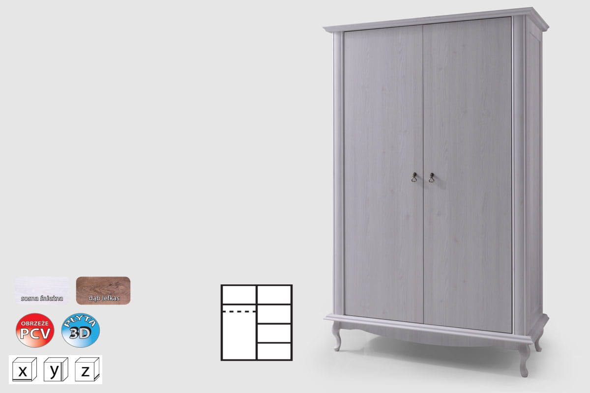 Meble systemowe Diana to szlachetna kolekcja mebli, gdzie klasyczna stylistyka połączona została z nowoczesną technologią produkcji oraz wyjątkową gamą kolorystyczną śnieżnej sosny lub dębu lefaks. Szeroki wybór brył pozwoli zaaranżować wnętrze pokoju dziennego, salonu oraz jadalni.