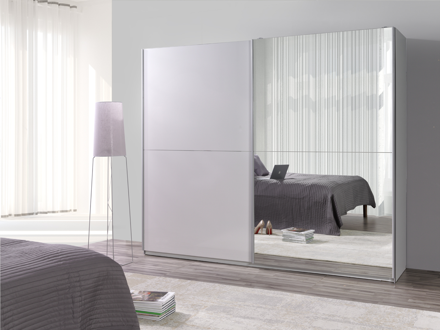 Półki we wnętrzu szafy zostały wykończone aluminiowym profilem co nadaje szafie dodatkowego efektu i zapobiega uginaniu się półek pod ciężarem.
