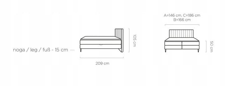 - wysokość zagłowia 105 cm