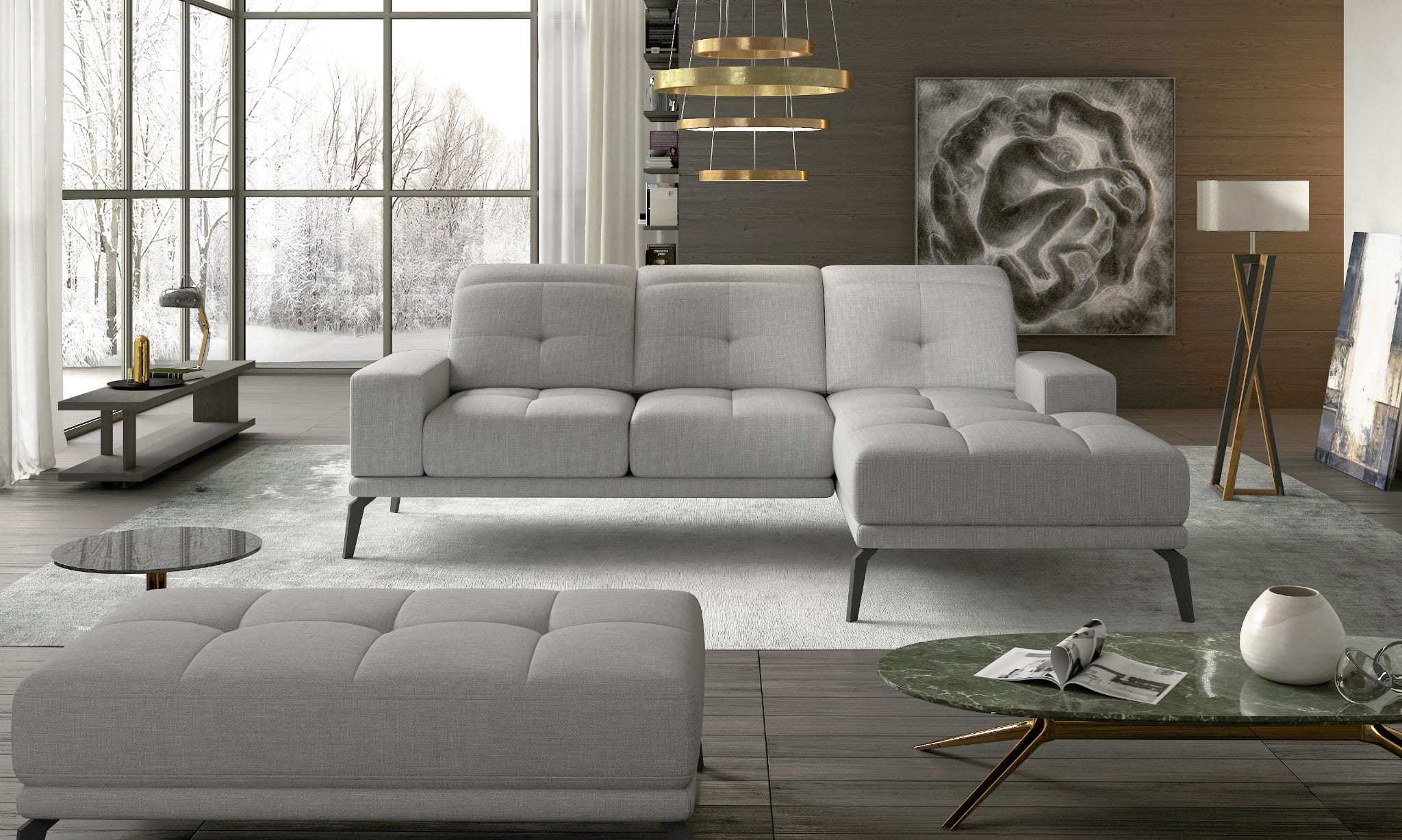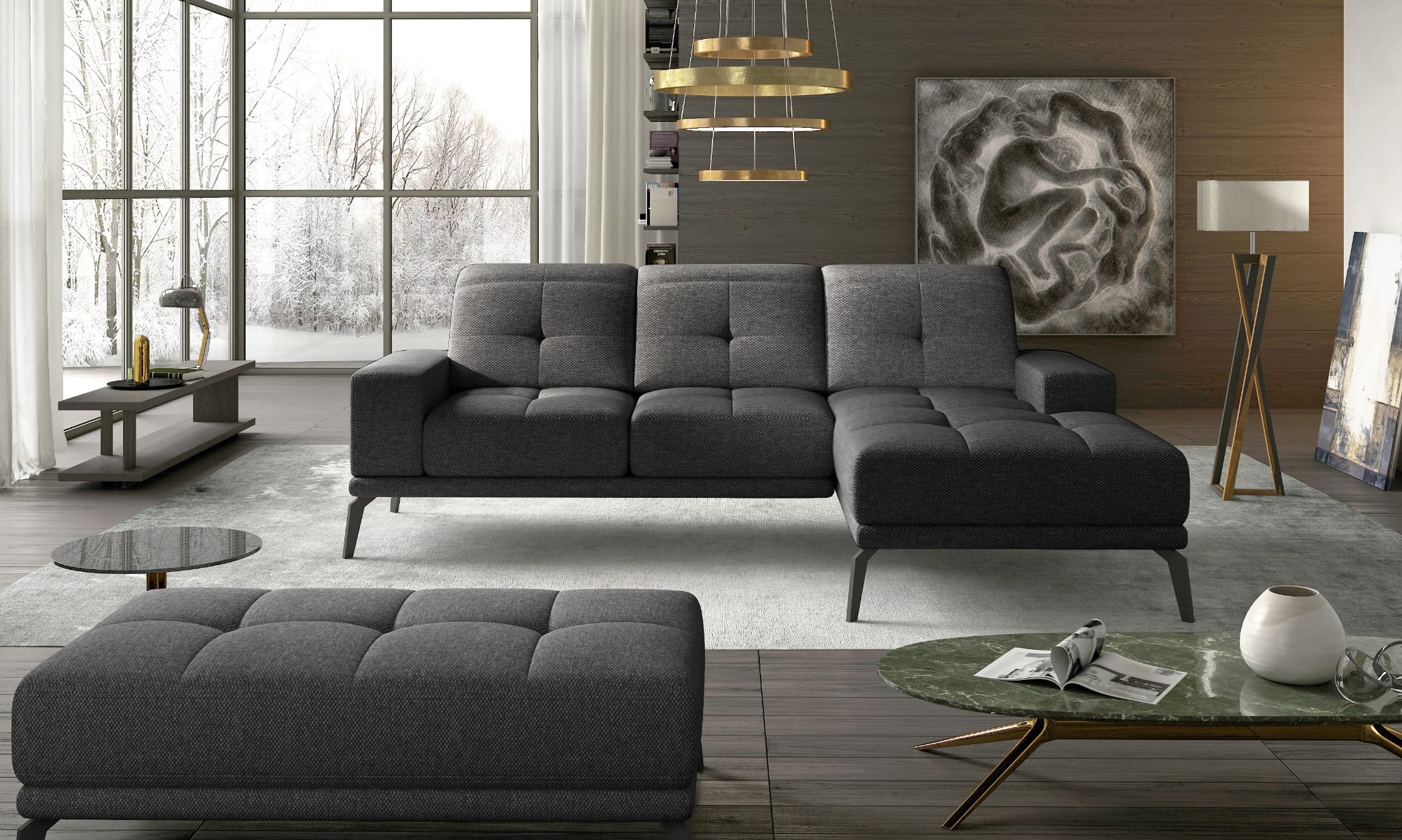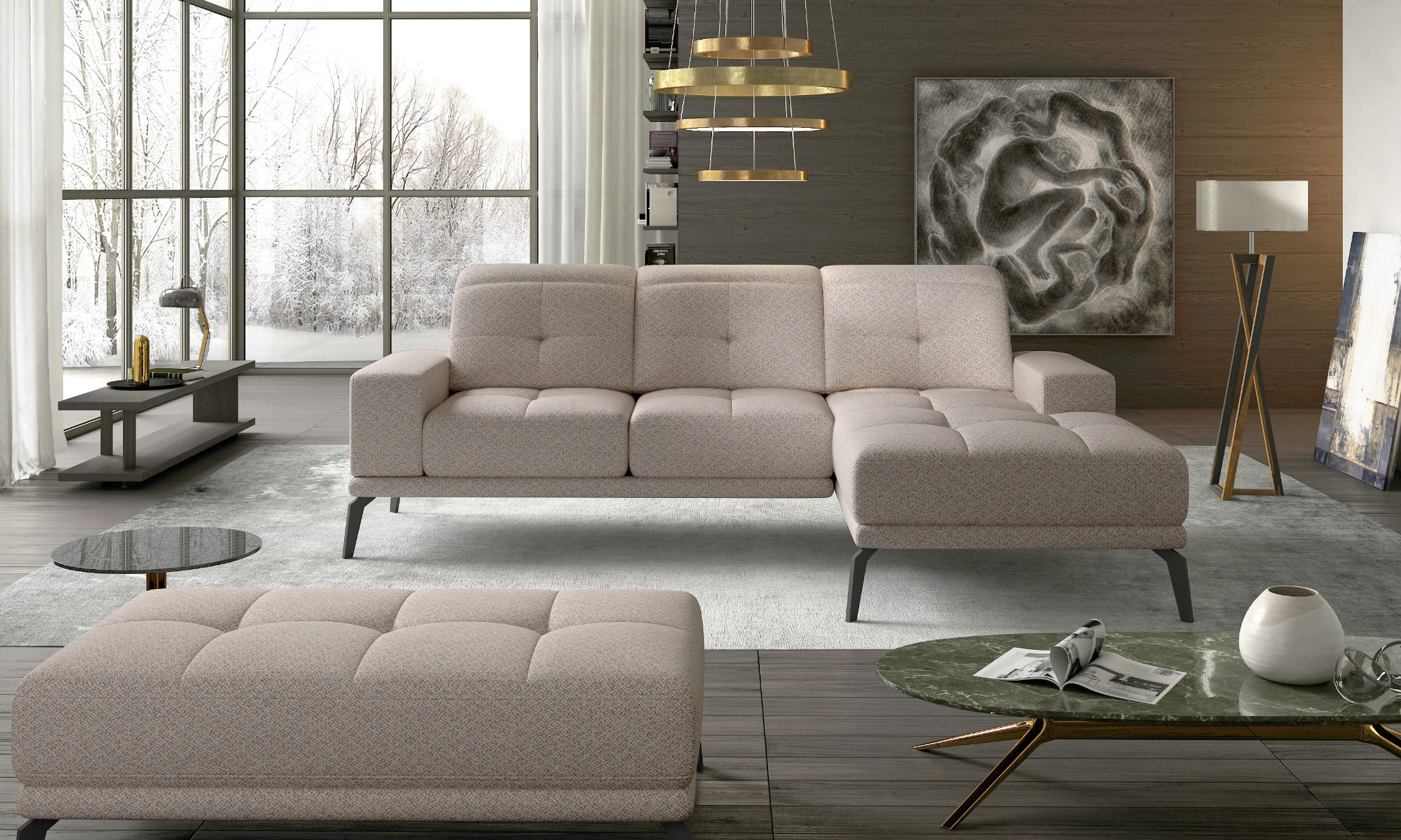 Narożnik Torrense to nowoczesne połączenie narożnika z wielofunkcyjną pufą, która może posłużyć zarówno jako dodatkowe miejsce do siedzenia, podnóżek jak i stolik na tacę z kawą i herbatą. To model, który wprowadza w nasze wnętrza odrobinę luksusu. Wysokie, cienkie, czarne, metalowe nóżki sprawiają, że duża konstrukcja siedziska staje się lekka, nie tracąc nic na swojej stabilności. Torrense to narożnik, w którym zastosowano wiele innowacyjnych rozwiązań: długa otomana, która pozwala na swobodne rozprostowanie nóg, dwa szerokie podłokietniki, przesuwane oparcia oraz regulowane zagłówki. Wszystko to sprawia, że narożnik Torrense jest stworzony, aby zapewniać idealny wypoczynek - wykorzystaj pufę jako dodatkowe miejsce do siedzenia, gdy przyjdą goście lub dosuń do narożnika i ciesz się dużą powierzchnią spania. Delikatne pikowania na siedzisku i oparciu to detale, które sprawiają, że całość nabiera eleganckiego wymiaru. Zestaw narożnik z pufą dostępny jest w ponad 30 wariantach kolorystycznych, w zarówno energetycznych, jak i stonowanych kolorach.
