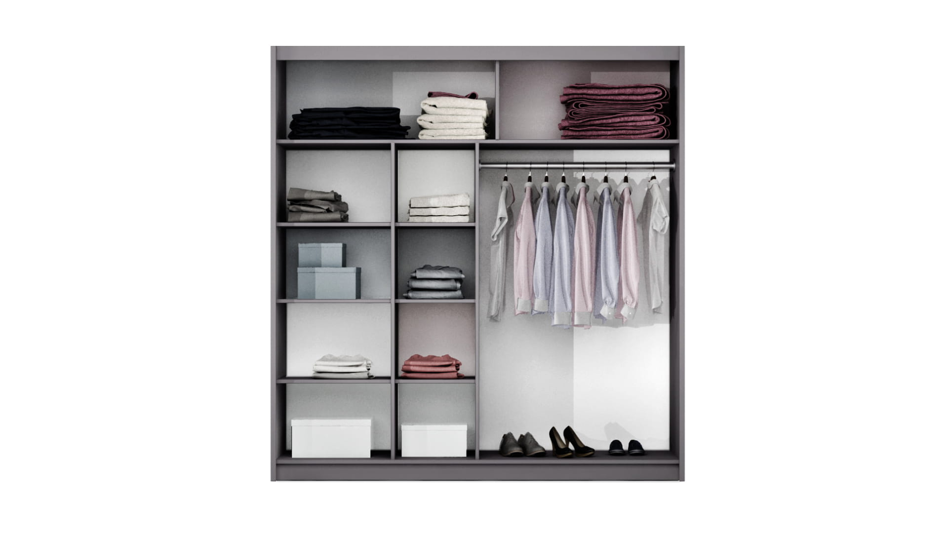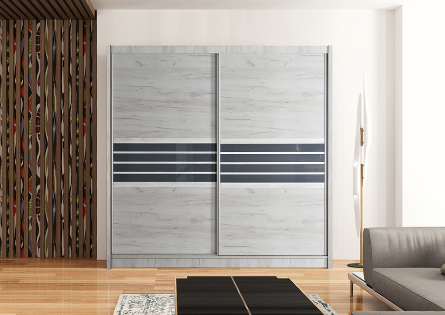 Wyposażenie: aluminiowe prowadnice, dolne wózki na łożyskach, 2 drążki, półki